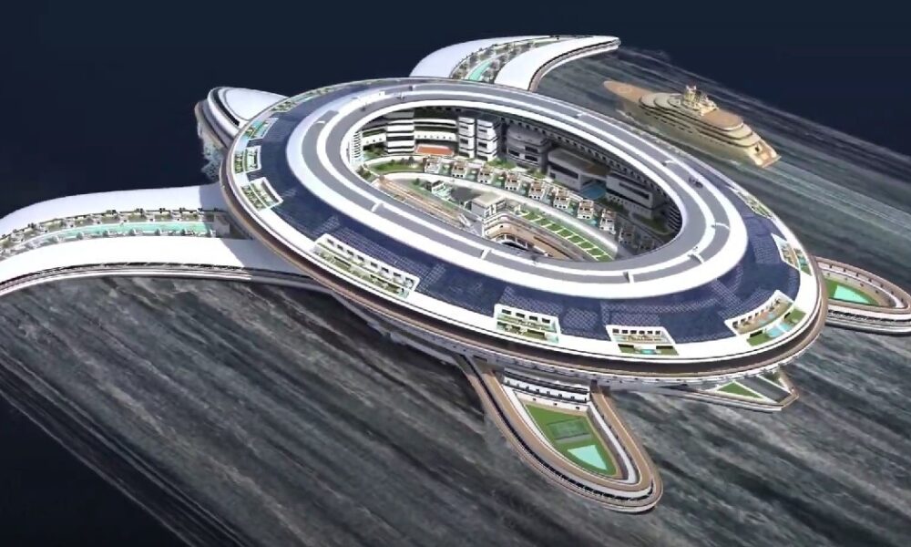 Un estudio de diseño italiano lanzó una propuesta de una ciudad flotante en forma de tortuga que se llamará Pangeos, tendrá 550 metros de largo y...