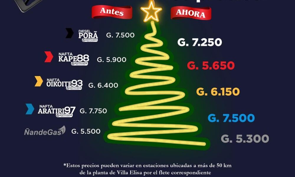 El presidente Santiago Peña anunció el día de hoy una nueva rebaja en los precios de los combustibles de Gs. 250 desde hoy. El gas también...