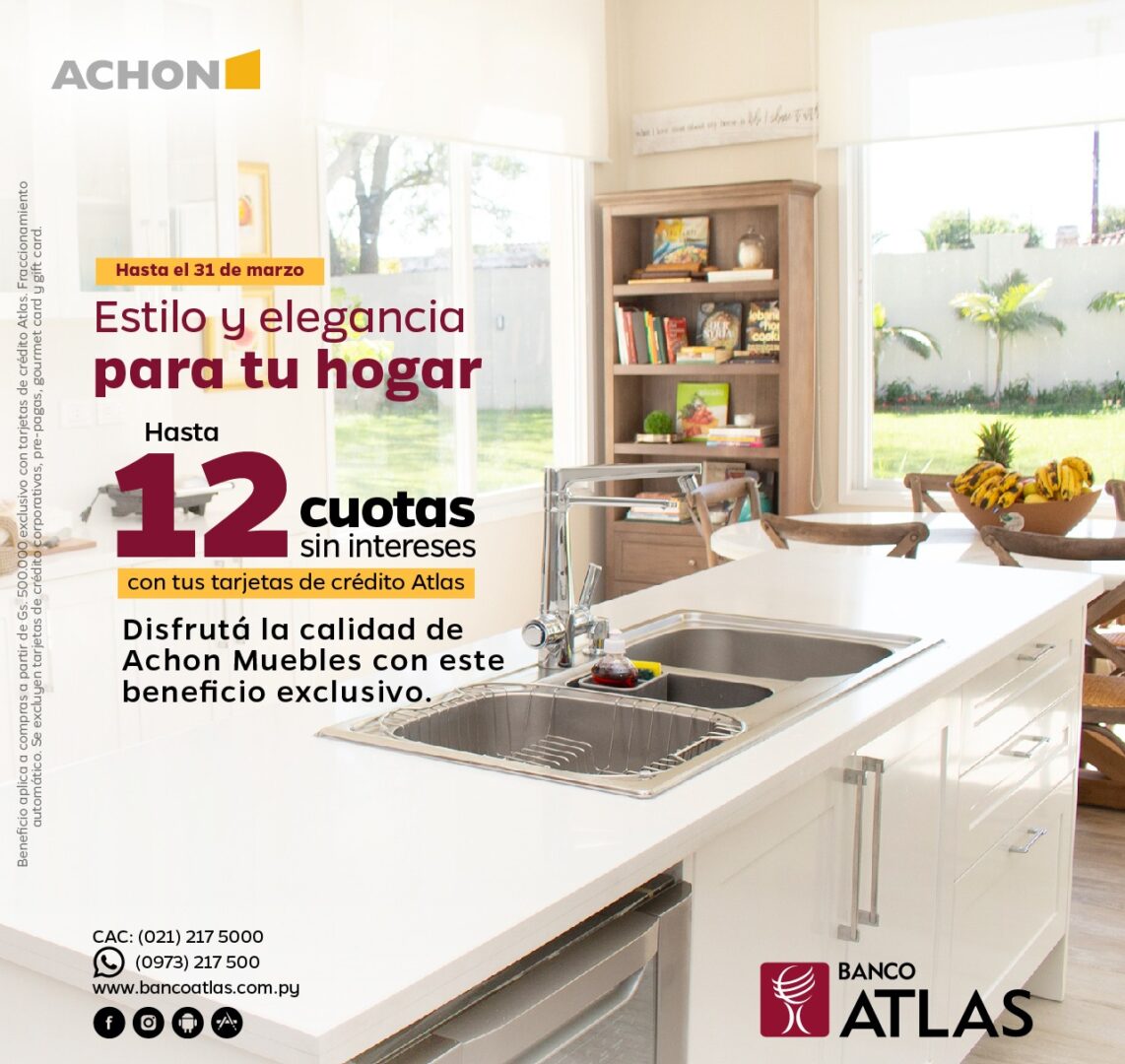 Además, se suma a esta alianza la reconocida empresa de muebles de alta calidad, ACHON, con larga trayectoria en  este rubro. Los clientes de Banco Atlas acceden al beneficio de financiar sus compras hasta en 12 cuotas sin intereses, a partir de G. 500.000.