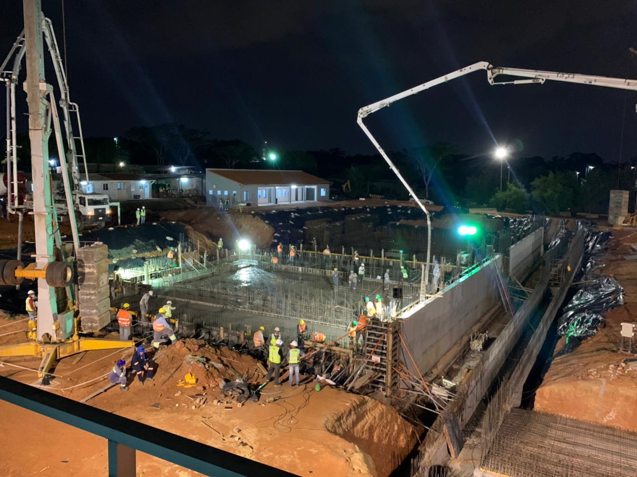 Actualmente, se realizan labores de cargamento de hormigonado a doble turno para la construcción de la estructura del nuevo módulo (VK4) en el predio de la Planta de Tratamiento de Viñas Cué.
