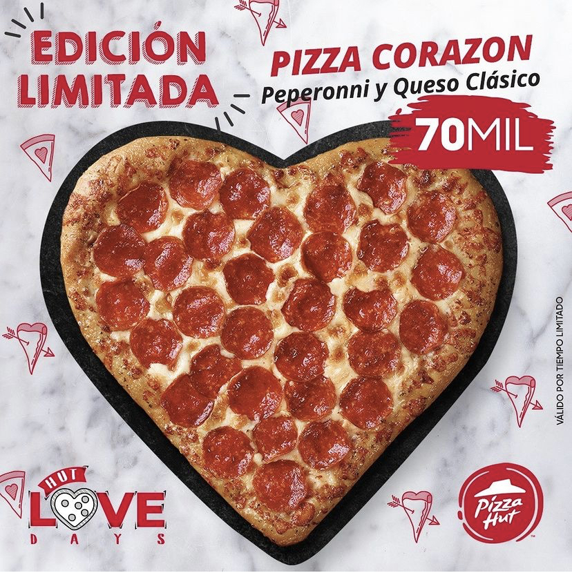 Imagínate que tu pareja encuentra la casa al llegar del trabajo una pizza en forma de corazón si, Pizza Hut lanza una edicion limitada. ¡Lo adorará! Acompáñalo de una rica bebida, música de ambiente y un postre super delicioso.