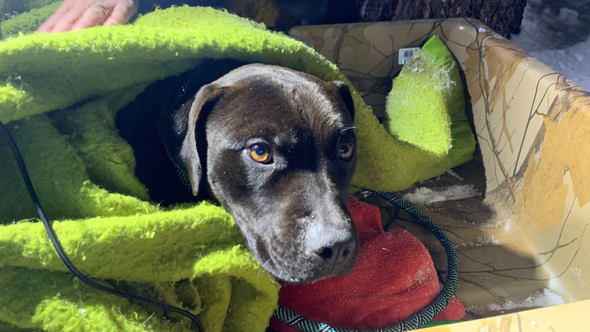 Un perro perdido durante cuatro meses fue encontrado vivo en la nieve y se reunió con su familia