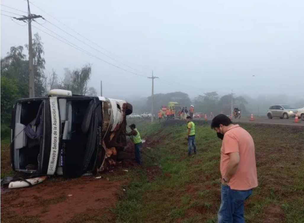 Vuelco de bus dejó dos personas muertas en Caaguazú